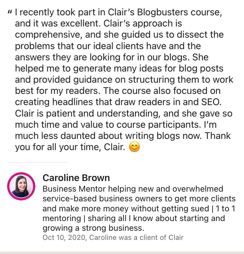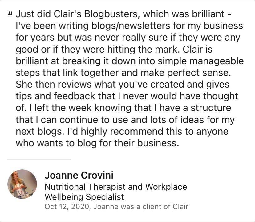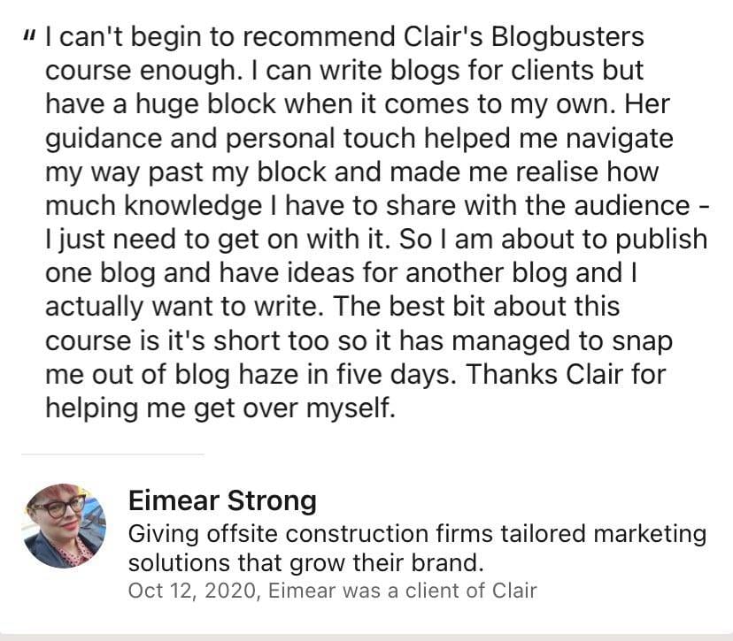 Blogbusters is for you if you want to feel more confident about your messaging and it can help make creating regular content feel easier and more achievable.